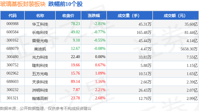 从资金流向上来看,当日玻璃基板封装板块主力资金净流出7.01亿元,游资资金净流入2.54亿元,散户资金净流入4.47亿元。玻璃基板封装板块个股资金流向见下表: