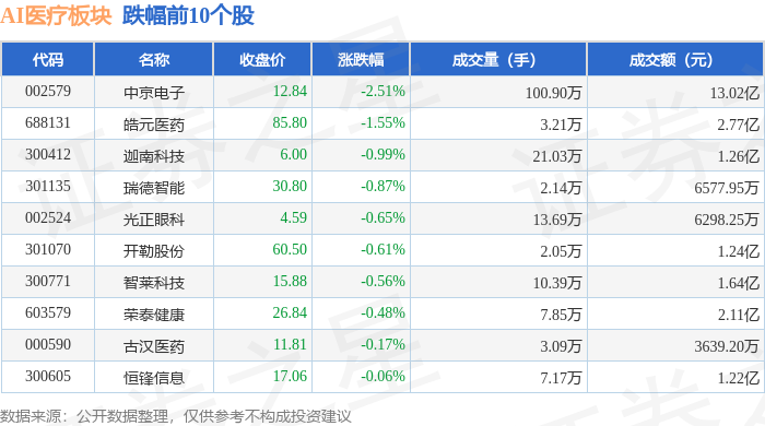 从资金流向上来看,当日AI医疗板块主力资金净流入14.47亿元,游资资金净流出2.33亿元,散户资金净流出12.15亿元。AI医疗板块个股资金流向见下表: