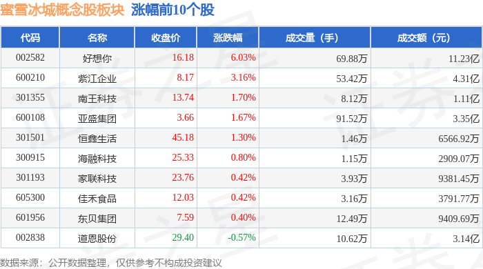 从资金流向上来看,当日蜜雪冰城概念股板块主力资金净流出2807.85万元,游资资金净流出943.19万元,散户资金净流入3751.04万元。蜜雪冰城概念股板块个股资金流向见下表: