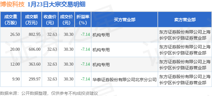 证券之星消息,1月23日博俊科技发生大宗交易,交易数据如下: