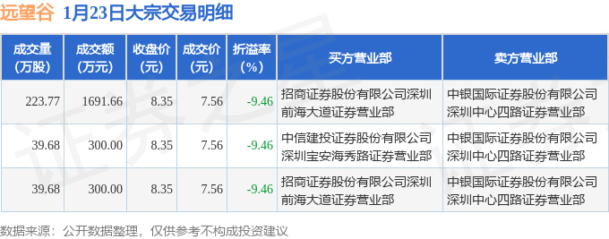 证券之星消息,1月23日远 望 谷发生大宗交易,交易数据如下: