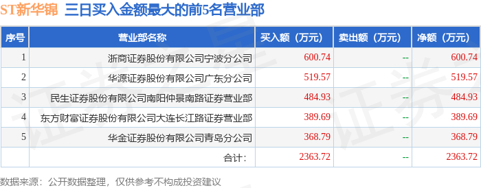 证券之星消息,沪深交易所2026年1月23日公布的交易公开信息显示,ST新华锦(600735)因ST、*ST证券连续三个交易日内收盘价格涨幅偏离值累计达到12%的证券登上龙虎榜。此次是近5个交易日内第1次上榜。
