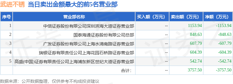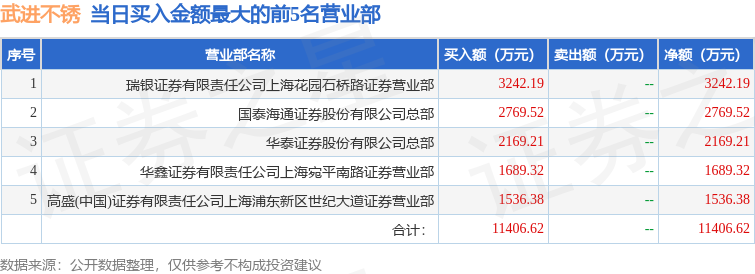 证券之星消息,沪深交易所2026年1月23日公布的交易公开信息显示,武进不锈(603878)因有价格涨跌幅限制的日收盘价格涨幅偏离值达到7%的前五只证券登上龙虎榜。此次是近5个交易日内第1次上榜。