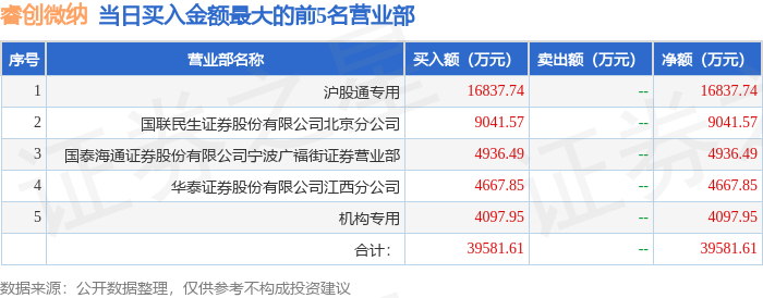 从龙虎榜公布的当日买卖数据来看,机构合计净买入468.47万元,北向资金合计净卖出720.55万元。章盟主等知名游资榜上有名。(知名游资章盟主一般指国泰海通证券股份有限公司宁波广福街证券营业部席位,根据市场资料整理,仅供参考)