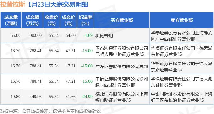 证券之星消息,1月23日拉普拉斯发生大宗交易,交易数据如下:
