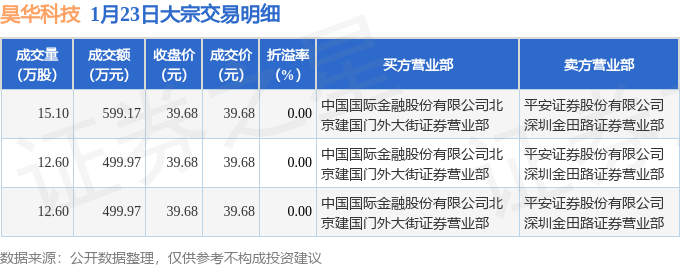 证券之星消息,1月23日昊华科技发生大宗交易,交易数据如下: