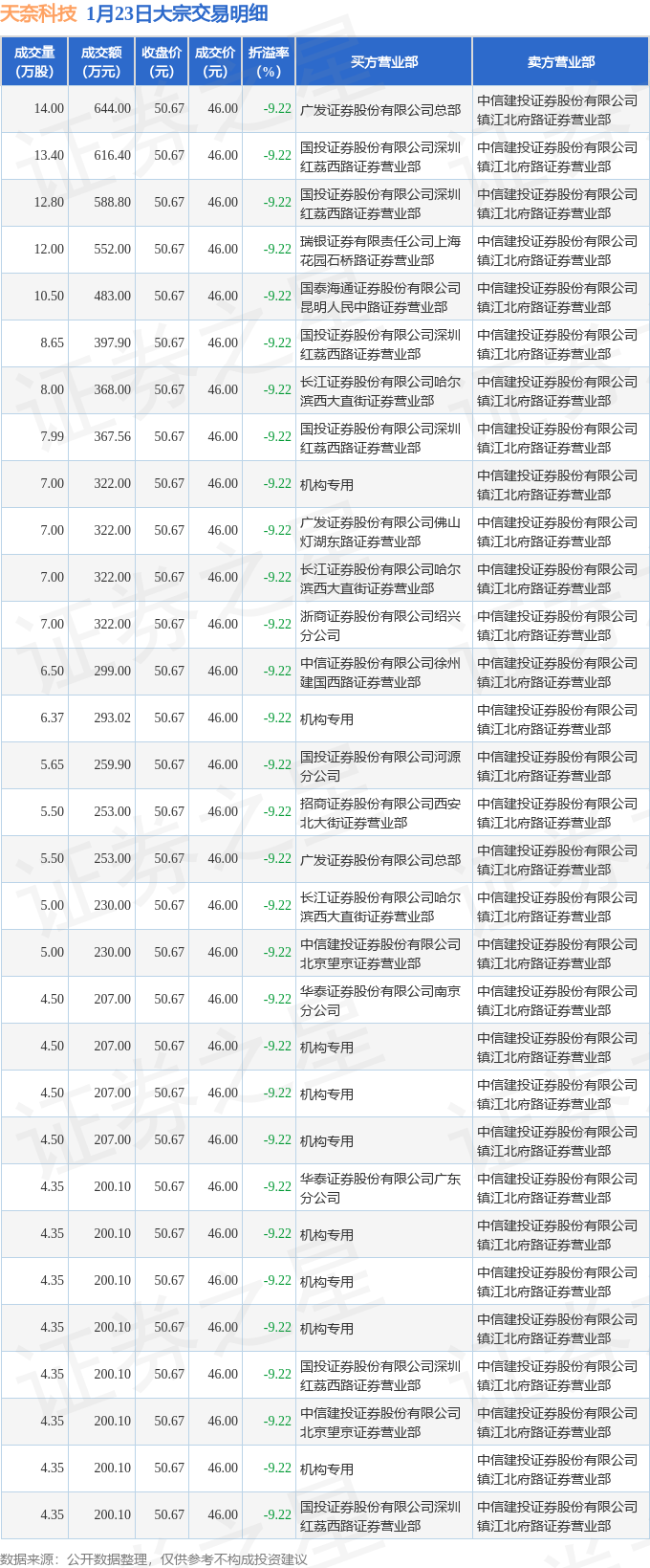 证券之星消息,1月23日天奈科技发生大宗交易,交易数据如下:
