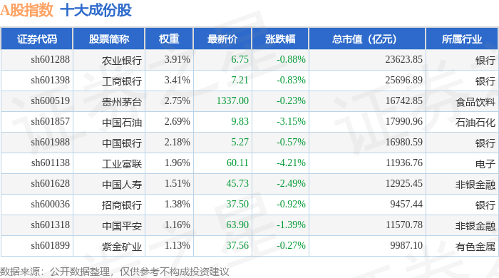 A股指数(000002)十大成份股详情如下: