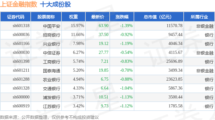 上证金融(000038)指数十大成份股详情如下: