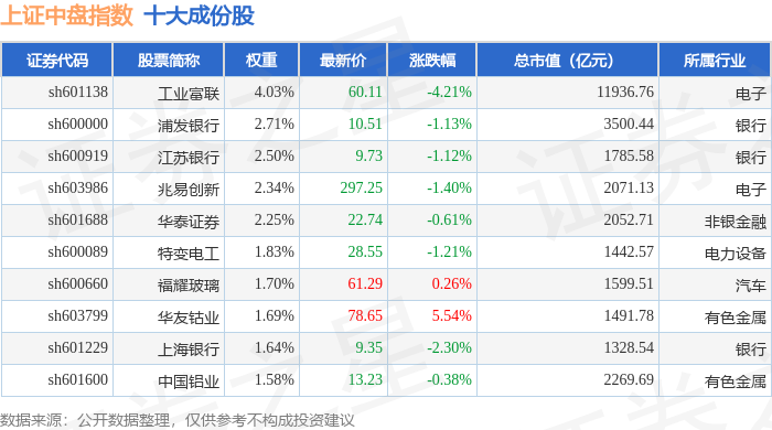 上证中盘(000044)指数十大成份股详情如下:
