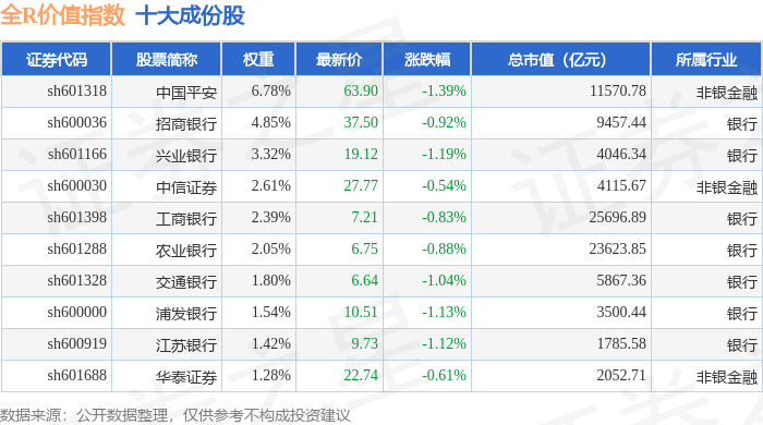 全R价值(000060)指数十大成份股详情如下: