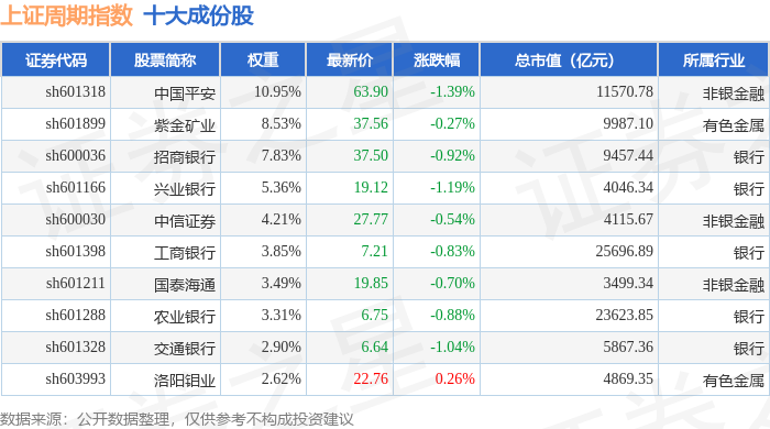 上证周期(000063)指数十大成份股详情如下: