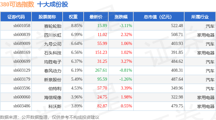 380可选(000107)指数十大成份股详情如下: