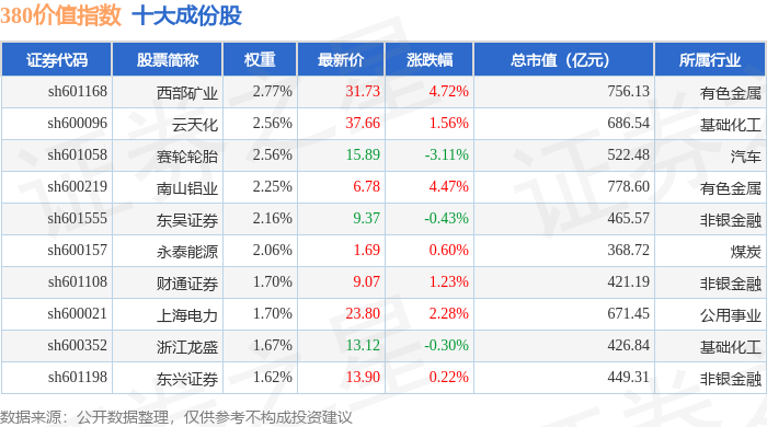 380价值(000118)指数十大成份股详情如下: