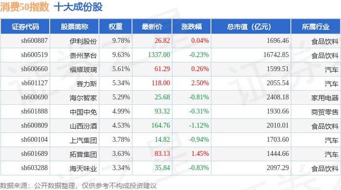 证券之星消息,1月23日,消费50(000126)指数报收于8315.36点,涨0.3%,成交605.28亿元,换手率1.76%。当日该指数成份股中,上涨的有33家,旭升集团以6.02%的涨幅领涨,下跌的有17家,赛轮轮胎以3.11%的跌幅领跌。