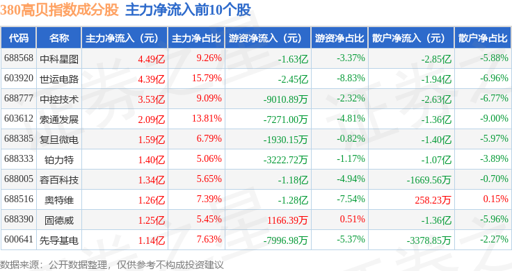 资金流向方面,380高贝(000137)指数成份股当日主力资金净流出合计1.89亿元,游资资金净流出合计12.87亿元,散户资金净流入合计14.76亿元。成份股资金流向详情见下表: