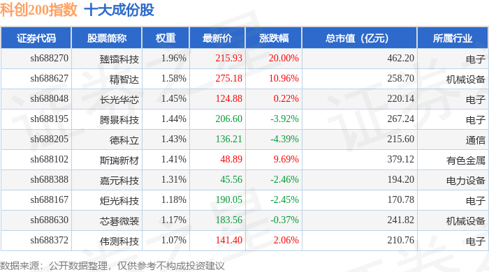 证券之星消息,1月23日,科创200(000699)指数报收于1589.27点,涨2.58%,成交943.34亿元,换手率4.01%。当日该指数成份股中,上涨的有157家,臻镭科技以20.0%的涨幅领涨,下跌的有42家,海天瑞声以7.68%的跌幅领跌。