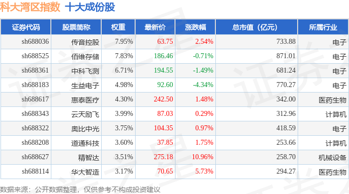 科大湾区(000697)指数十大成份股详情如下: