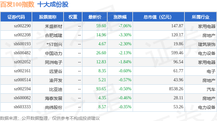 百发100(000851)指数十大成份股详情如下: