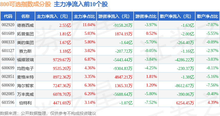资金流向方面,800可选(000931)指数成份股当日主力资金净流出合计43.0亿元,游资资金净流入合计2.33亿元,散户资金净流入合计40.66亿元。成份股资金流向详情见下表: