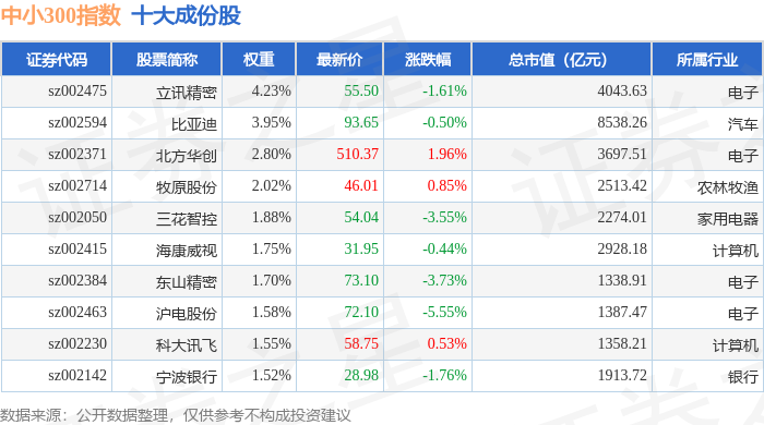 资金流向方面,中小300(399008)指数成份股当日主力资金净流出合计42.81亿元,游资资金净流出合计35.18亿元,散户资金净流入合计77.98亿元。成份股资金流向详情见下表:
