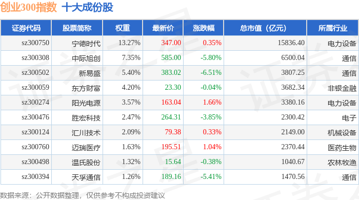 创业300(399012)指数十大成份股详情如下: