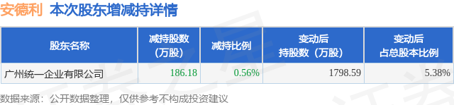 证券之星消息,1月23日安德利发布公告《安德利:关于持股5%以上股东减持计划实施完毕暨减持结果公告》,其股东广州统一企业有限公司于2026年1月17日至2026年1月23日间合计减持186.18万股,占公司目前总股本的0.5571%,变动期间该股股价上涨9.26%,截止1月23日收盘报43.56元。