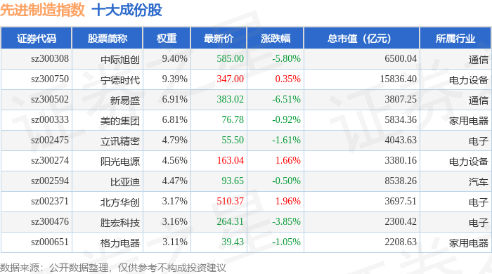 先进制造(399260)指数十大成份股详情如下: