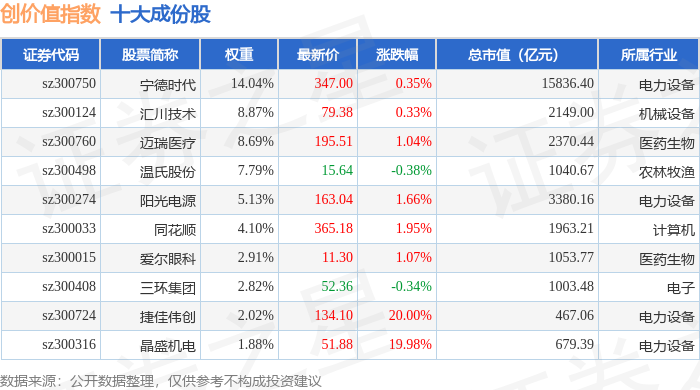 证券之星消息,1月23日,创价值(399295)指数报收于5804.2点,涨2.29%,成交1370.39亿元,换手率3.56%。当日该指数成份股中,上涨的有39家,捷佳伟创以20.0%的涨幅领涨,下跌的有11家,天孚通信以5.41%的跌幅领跌。