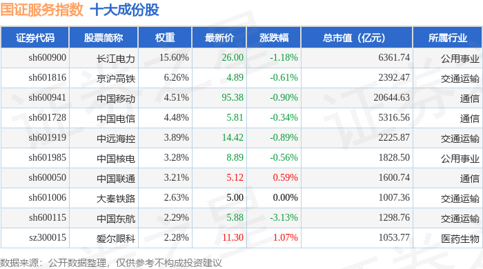 证券之星消息,1月23日,国证服务(399320)指数报收于2154.47点,跌0.1%,成交559.26亿元,换手率0.91%。当日该指数成份股中,上涨的有47家,太阳能以10.06%的涨幅领涨,下跌的有44家,中国东航以3.13%的跌幅领跌。