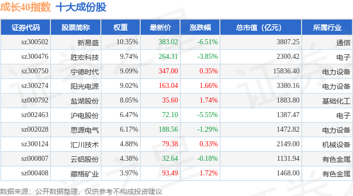 证券之星消息,1月23日,成长40(399326)指数报收于6684.12点,跌0.73%,成交1015.0亿元,换手率3.02%。当日该指数成份股中,上涨的有27家,苏试试验以6.48%的涨幅领涨,下跌的有12家,新易盛以6.51%的跌幅领跌。