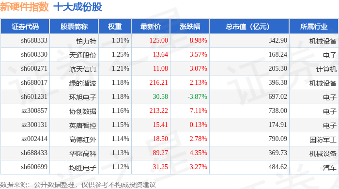 证券之星消息,1月23日,新硬件(399360)指数报收于8588.52点,涨1.48%,成交1671.01亿元,换手率3.88%。当日该指数成份股中,上涨的有79家,四维图新以9.98%的涨幅领涨,下跌的有20家,工业富联以4.21%的跌幅领跌。