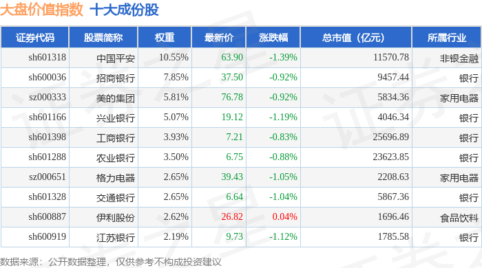 资金流向方面,大盘价值(399373)指数成份股当日主力资金净流出合计56.27亿元,游资资金净流入合计26.67亿元,散户资金净流入合计29.6亿元。成份股资金流向详情见下表: