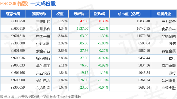 ESG300(399378)指数十大成份股详情如下: