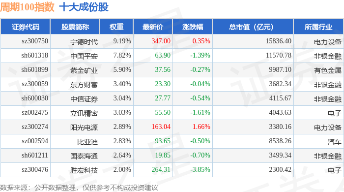 周期100(399402)指数十大成份股详情如下: