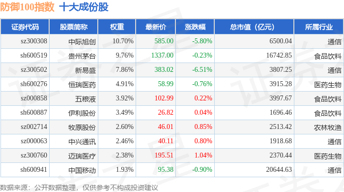 证券之星消息,1月23日,防御100(399403)指数报收于8722.53点,跌0.74%,成交1739.86亿元,换手率2.11%。当日该指数成份股中,上涨的有66家,益丰药房以10.02%的涨幅领涨,下跌的有32家,新易盛以6.51%的跌幅领跌。