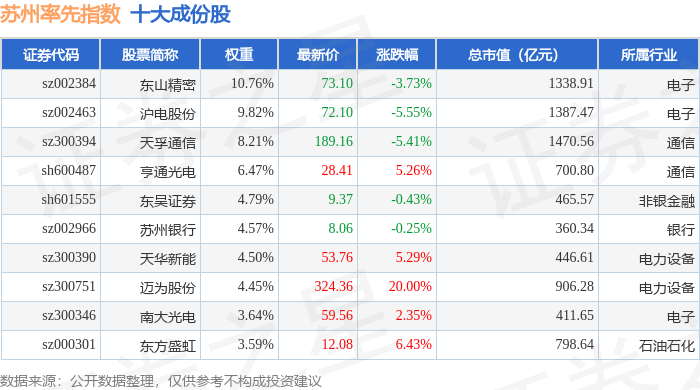 苏州率先(399410)指数十大成份股详情如下: