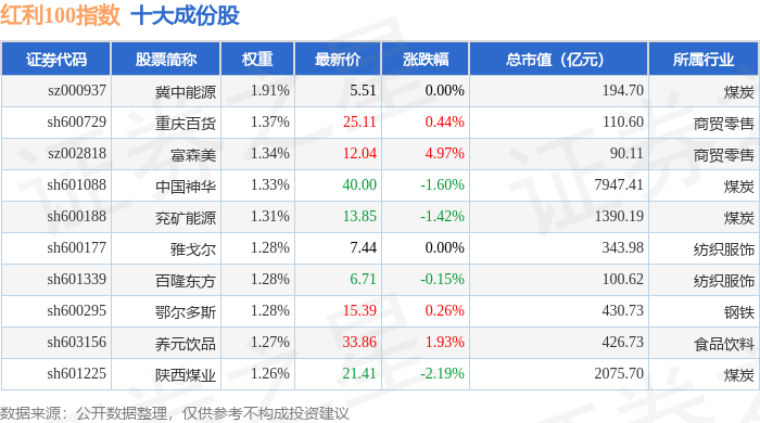 红利100(399411)指数十大成份股详情如下: