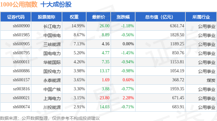 资金流向方面,1000公用(399390)指数成份股当日主力资金净流出合计19.56亿元,游资资金净流入合计7.13亿元,散户资金净流入合计12.43亿元。成份股资金流向详情见下表: