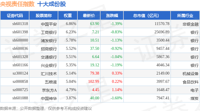 央视责任(399555)指数十大成份股详情如下: