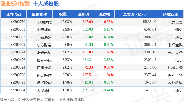 证券之星消息,1月23日,创业板R(399606)指数报收于3713.59点,涨0.63%,成交2934.5亿元,换手率4.05%。当日该指数成份股中,上涨的有79家,迈为股份以20.0%的涨幅领涨,下跌的有21家,新易盛以6.51%的跌幅领跌。