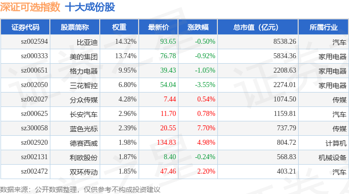 深证可选(399616)指数十大成份股详情如下: