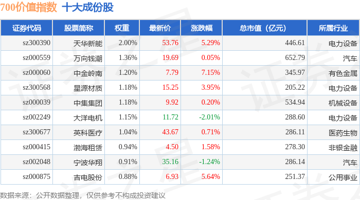 700价值(399629)指数十大成份股详情如下: