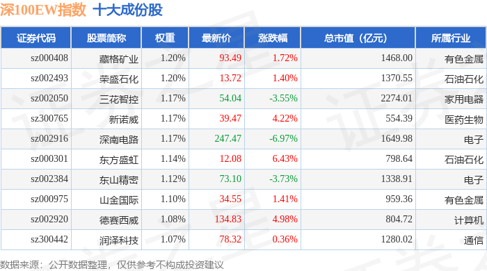 深100EW(399632)指数十大成份股详情如下:
