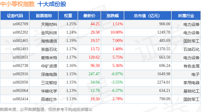 证券之星消息,1月23日,中小等权(399634)指数报收于4758.88点,涨1.35%,成交2175.14亿元,换手率2.72%。当日该指数成份股中,上涨的有72家,金风科技以10.0%的涨幅领涨,下跌的有25家,深南电路以6.97%的跌幅领跌。