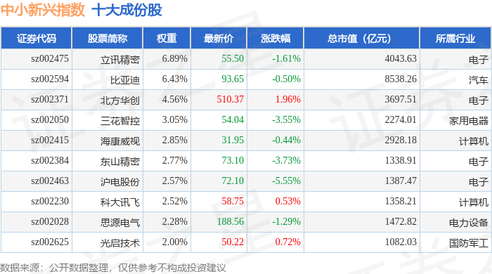 证券之星消息,1月23日,中小新兴(399642)指数报收于2561.39点,涨0.82%,成交2519.24亿元,换手率4.53%。当日该指数成份股中,上涨的有73家,协鑫集成以10.18%的涨幅领涨,下跌的有26家,深南电路以6.97%的跌幅领跌。