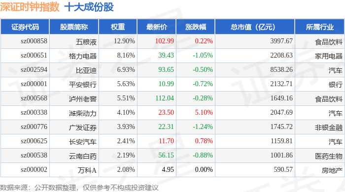 深证时钟(399644)指数十大成份股详情如下: