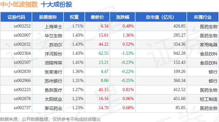 证券之星消息,1月23日,中小低波(399663)指数报收于2076.2点,涨0.64%,成交581.51亿元,换手率1.63%。当日该指数成份股中,上涨的有71家,齐翔腾达以7.03%的涨幅领涨,下跌的有21家,华峰化学以6.37%的跌幅领跌。