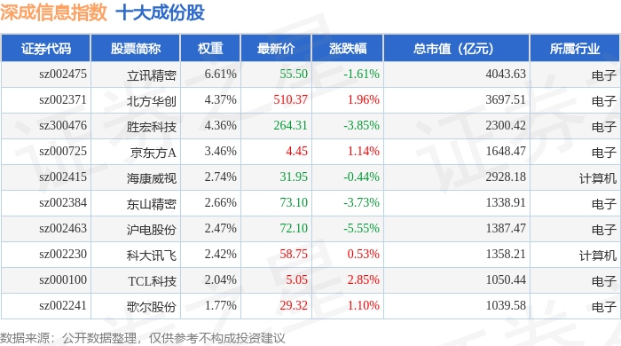 深成信息(399687)指数十大成份股详情如下: