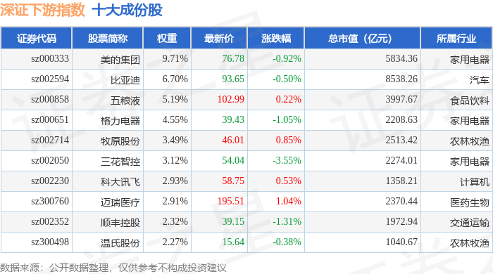 深证下游(399706)指数十大成份股详情如下:
